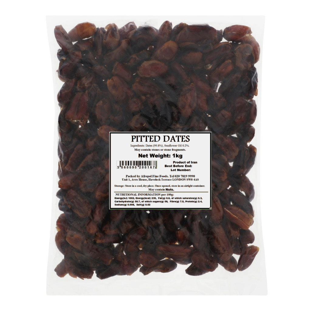 Product is made from dried whole pitted dates and should have a medium/dark brown colour with a glossy appearance. Product should be firm but not too hard or dry and should have a typical sweet flavour of dates with no off odours or flavours.