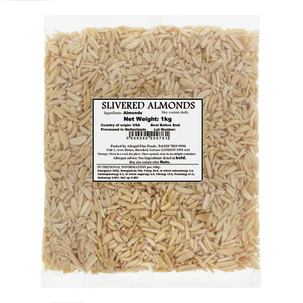 Blanched Slivered almonds are cut longitudinally into stick shaped pieces from blanched almonds. Firm and crisp with a good fresh typical almond flavour. Colour is a natural ‘creamy’ white colour.
